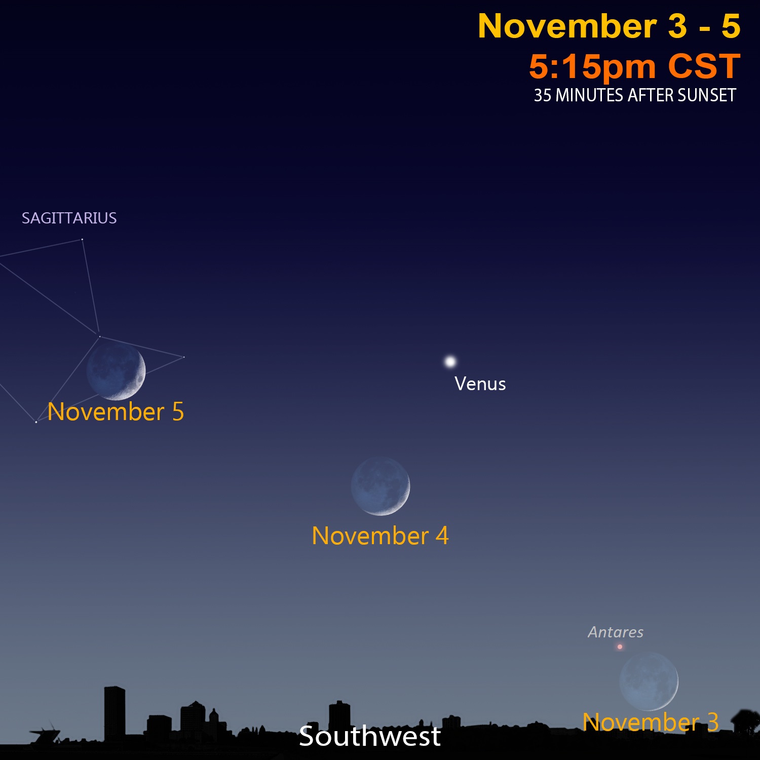 Saturn and the Moon are close from November 9 through 11—and very close November 10!