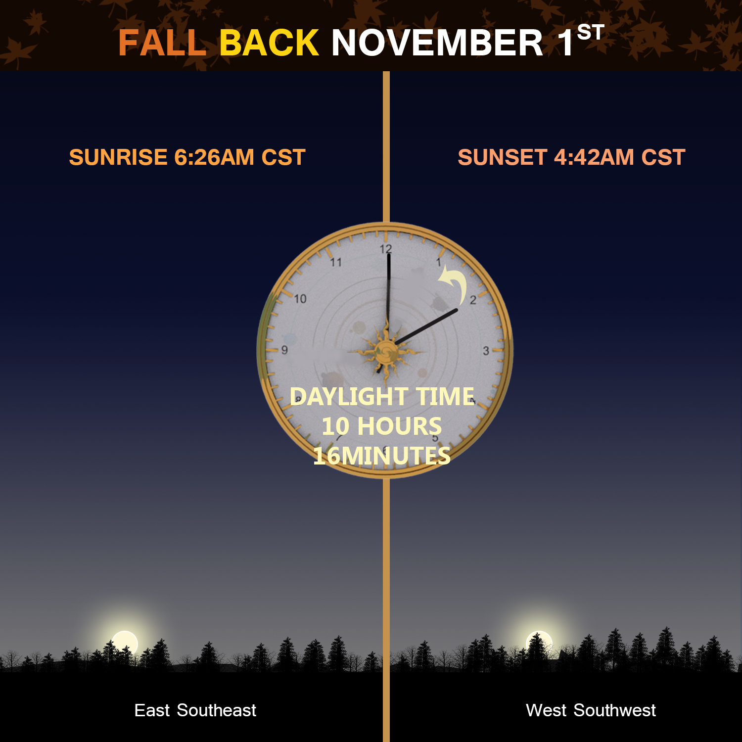 Halloween night will last an hour longer this year! We “fall back” on the first Sunday in November which is November 1.