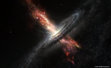 Before gas and dust fall and swirl into the event horizon -- the point of no return -- the matter ricochets around with such force that it escapes along the black hole’s axis of rotation. These outpouring jets of matter can trigger star formation. Though scientists have long suspected this process, they finally have direct visible evidence from super-massive black holes at the center of two galaxies that are involved in an ongoing collision! These stunning discoveries were made by the European Southern Observatory’s Very Large Telescope in Chile.